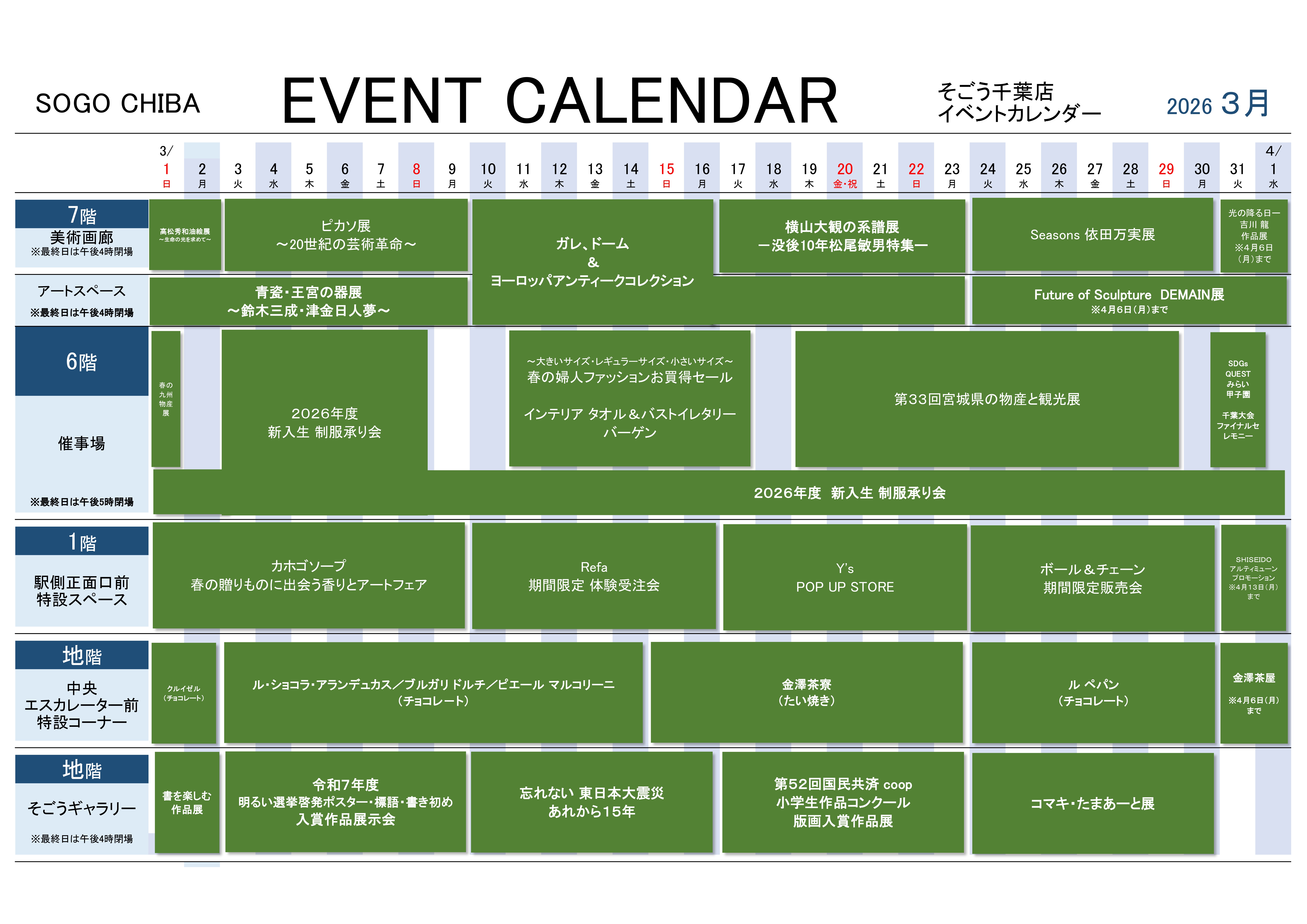 ※店内改装工事などにより、掲載売場・会期が変更になる場合がございます。
