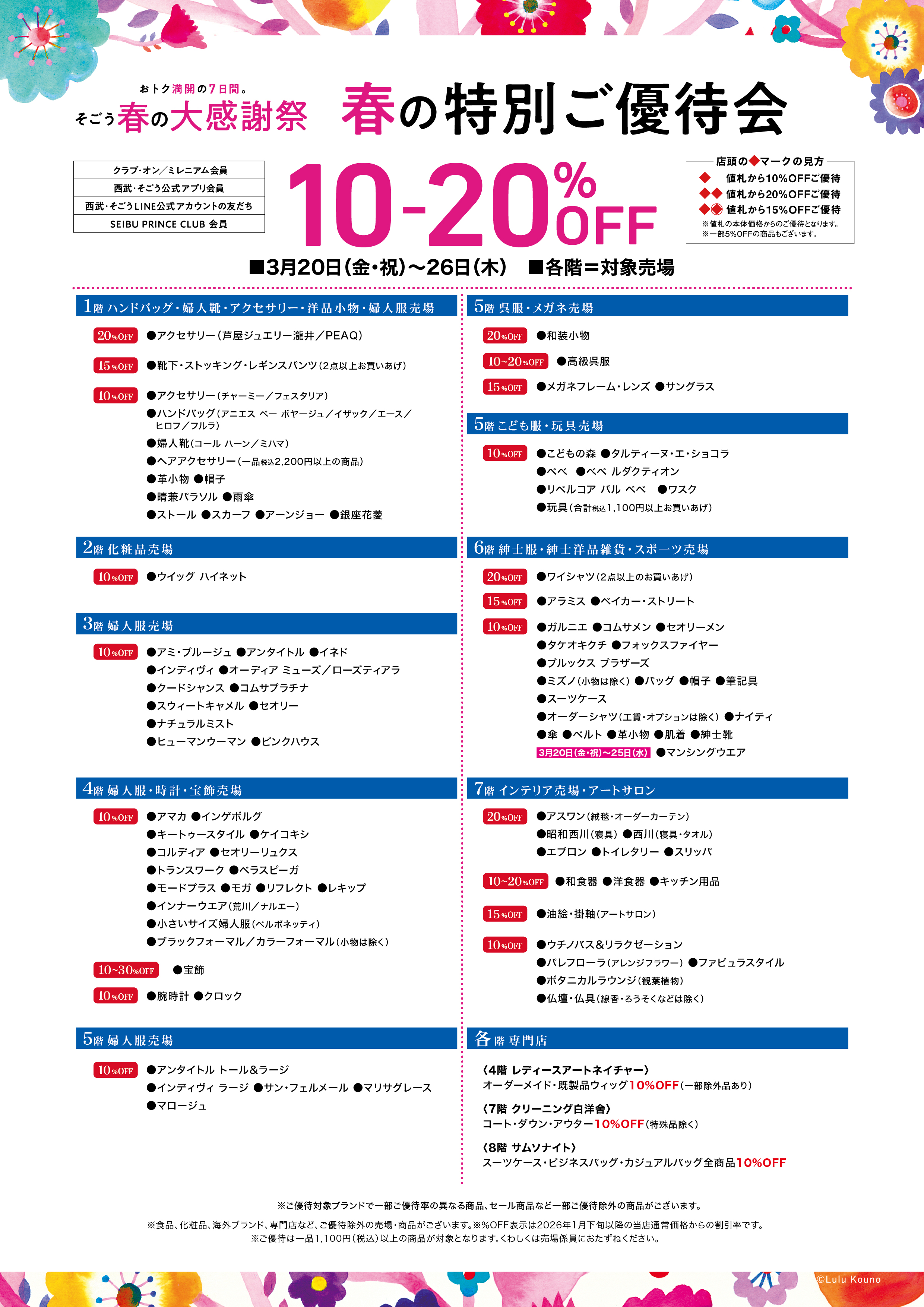 ・SEIBU PRINCE CLUB 会員の方は、SEIBU PRINCE CLUB アプリ内の「春の大感謝祭 春の特別ご優待会」紹介記事、またはSEIBU PRINCE CLUB 会員証をご提示ください。
