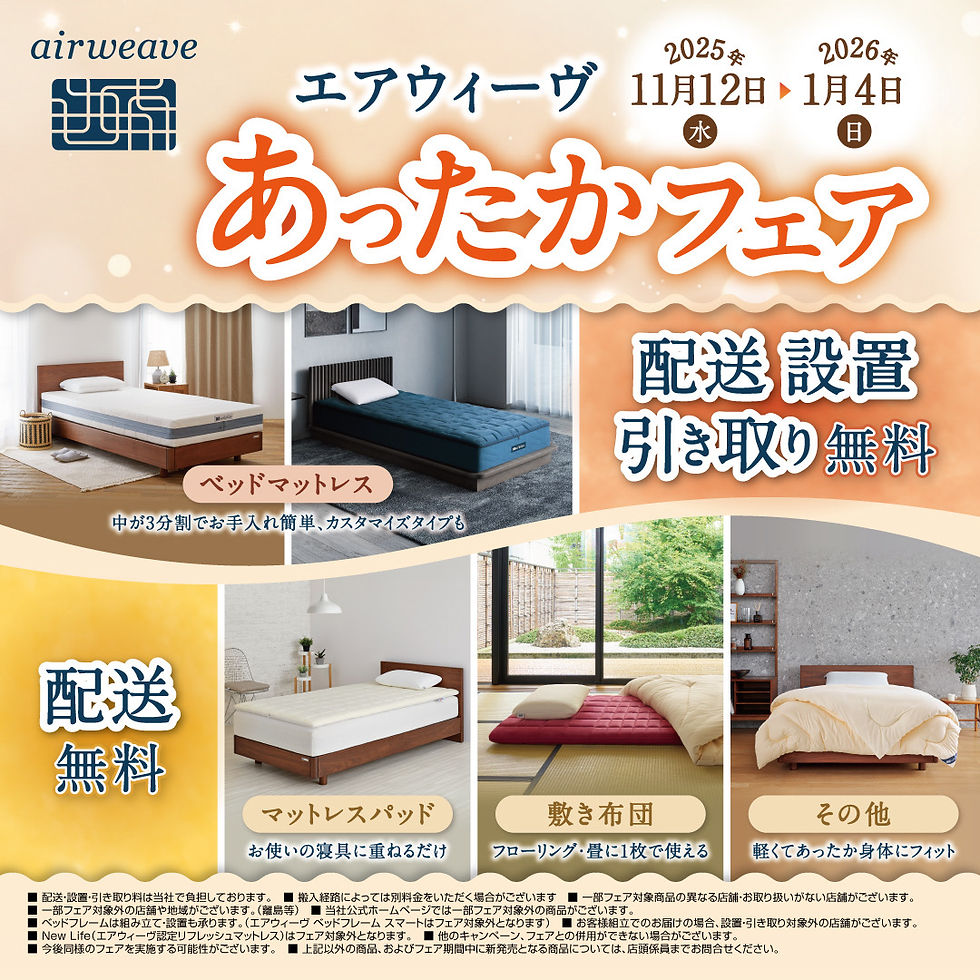 エアウィーヴの寝具で寒い冬を快適にお過ごししませんか。